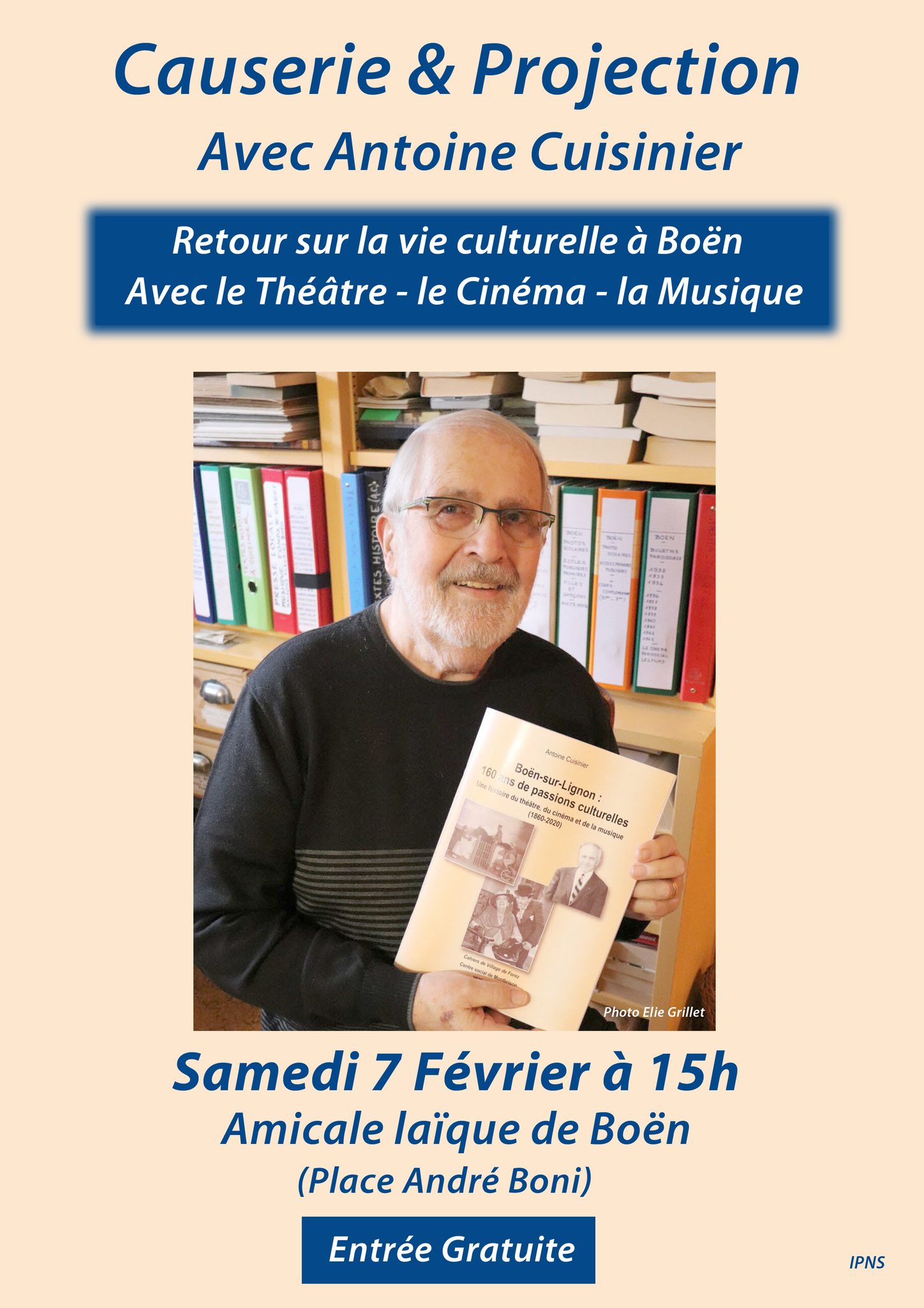 A l’occasion de la sortie de « Boën sur Lignon : 160 ans de passions culturelles », Antoine Cuisinier, nous fera revivre au travers d’une causerie et d’une projection de photos d’époque, la vie culturelle à Boën depuis 1860.