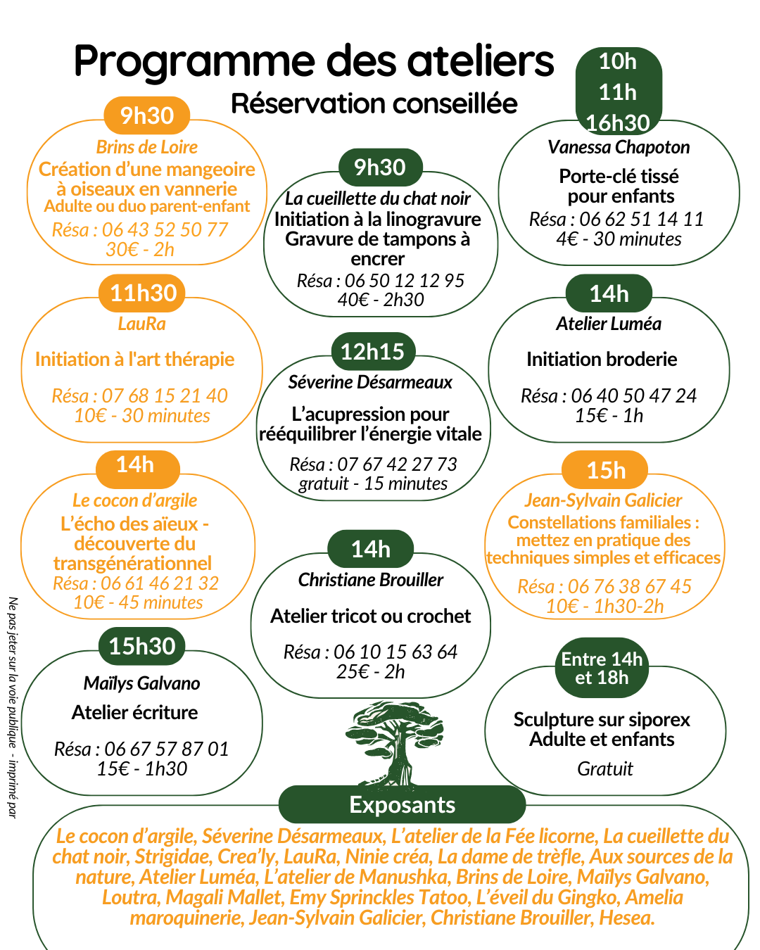 – Toute la journée : ateliers