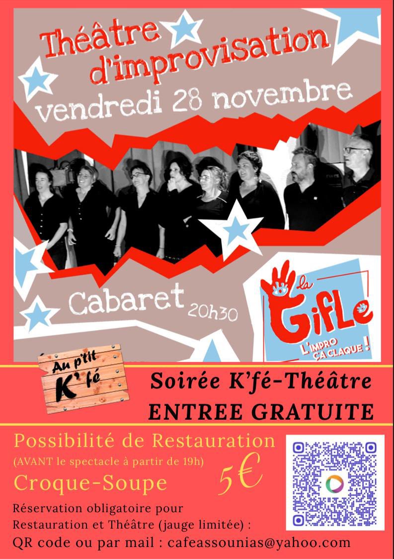 Improvisation théâtrale sur le thème du cabaret par la troupe La Gifle. Entrée gratuite - possibilité de restauration croque-soupe 5€