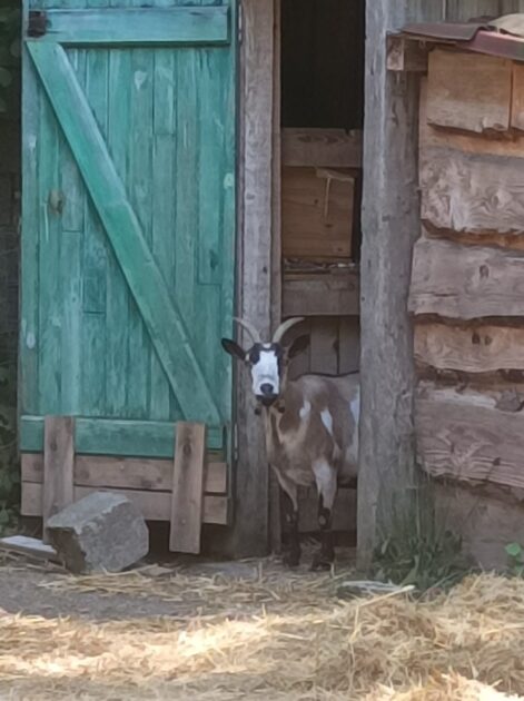 Nous sommes des amoureux des animaux et nous avons quelques compagnons : Lili la chèvre demi-naine, des poules et un coq, Mollie notre vieille chienne, et nos deux chats Navarro et Lucky.