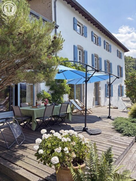 Gîte familial de 350 m² sur trois niveaux, alliant charme d’époque et confort moderne. Au rez-de-chaussée, les pièces de vie s’ouvrent sur une terrasse panoramique et une cour aménagée : salle à manger avec cheminée, cuisine équipée avec arrière-cuisine, petit salon/boudoir propice à la lecture ou aux jeux en famille. Une chambre familiale avec trois lits 90 (modulables en 180 + 90) et salle d’eau privative (douche, vasque, WC). Un WC indépendant complète ce niveau. À l’étage, une chambre avec deux lits 90, une suite parentale avec lit 180 et salle de bain avec bain bouillonnant et double vasque, un dortoir avec quatre lits 90, une salle d’eau avec WC. Le dernier étage propose un grand espace modulable en salon TV, salle de jeux ou de détente, une chambre familiale (lit 160 + 90), une salle de bain (baignoire avec pare-douche, lavabo) et un WC indépendant avec lavabo. Pour plus de confort, les charges sont incluses dans le tarif de location, et les lits sont faits à votre arrivée. Au cœur de la vallée de la Vêtre, ce gîte spacieux mitoyen à la maison des propriétaires avec entrée et extérieurs privatifs, pour 14 personnes offre un cadre paisible et verdoyant. Balcons foréziens, vue panoramique, charme authentique. Ici, la nature est un terrain de jeu infini : partez à pied ou à vélo à travers les forêts du Forez, entre feuillus et résineux. À 6 km, la station du Col de la Loge vous propose des activités toute l’année : ski de fond, balades en raquettes, luges ou chiens de traîneaux en hiver, randonnées et découvertes naturalistes l’été. En famille ou entre amis, vivez un séjour rythmé par l’air pur, les panoramas grandioses et la douceur de vivre forézienne. Les villages alentour révèlent aussi un patrimoine local préservé. L’accès à l’espace bien-être, se fait indépendamment et n’est pas compris dans le prix du gîte : formule privatisée de 3h pour l’ensemble des occupants du gîte.