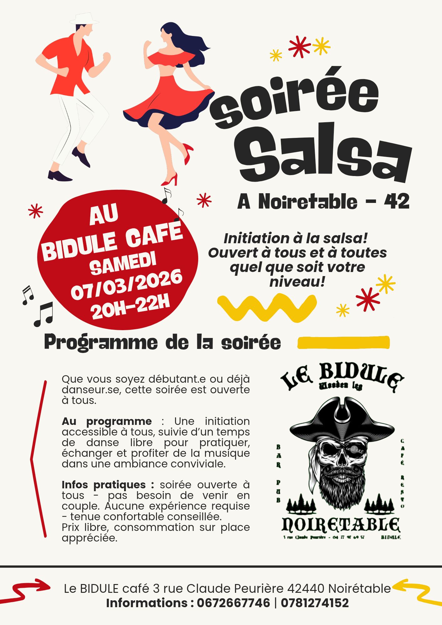 Initiation à la salsa accessible à tous, suivie d'un temps de danse libre pour pratiquer, échanger et profiter de la musique dans une ambiance conviviale.